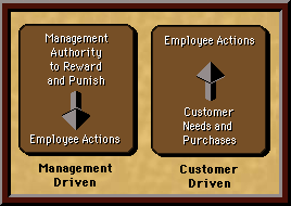 Constitutional EnterpriseVolume 2 Number 2, June 1994 © 1994-1998, Richard L. Forschler, SeaTac, Washington. All rights reserved.In This IssueI had planned to use this issue of Constitutional Enterprise to further define the constitutional branch of the CE system. However, comments by readers of earlier issues revealed the need for some clarification before moving on. Successful implementation of CE in existing businesses would require several significant changes. In this issue of Constitutional Enterprise I'll describe some of them in greater detail than previous issues, and explain why they are necessary. Topics I'll cover are: Business RevolutionCE is a radical departure from traditional business systems. It requires vast changes in thinking and practice. Internal Market SystemAt the heart of CE is an internal market system regulating production. Non market-based systems lack the measures necessary for efficiency. The Role of ManagersCE cannot be implemented efficiently in an existing business without first eliminating the top-down authority structure. Such a structure is incompatible with the internal market system of CE. Misplaced ConfidenceWe over-simplify the challenge of self-organizing systems if we think that success is assured simply by choosing the right leaders. Any person, good or bad, will achieve poor results in a flawed system. We must fix the system first, then secure good men and women. Business RevolutionBusiness theorists are notorious for taking their own ideas too seriously and seeing within them the origins of revolutionary progress. They tend to discredit the theories of others and with utopian optimism ignore potential weaknesses in their own. They are usually fanatics. Why should I be any different? CE has the potential for revolutionizing modern large businesses and bringing about quantum-level improvements in efficiency. Unfortunately, progress of this scale comes at a price. Compared to other popular business theories it requires a far more radical shift in both thinking and action. While some benefits could be realized by implementing CE in a piecemeal fashion, the various systems are so interdependent they will not work efficiently in isolation. [1] The influence of some features are greater than others, and some are more visible than others, but they all must work in concert for maximum efficiency. For this reason CE cannot be adjusted to fit most existing businesses; instead, they must be completely rebuilt to accommodate it. Perhaps the greatest obstacle to implementing CE is mental. Traditional concepts of top-down decision making, order, and organization must be replaced with philosophies of organic-like adaptation and self-organizing systems. People accustomed to long-range planning and command structures will have difficulty trusting anything else. Many will never be convinced until CE is proved in real-life applications. Meanwhile, the only way to allay their fear is the example of the free market in society, and most people have only a vague understanding of how the free market works. Internal Market SystemThe most important difference between CE and traditional businesses is the presence of an internal market system. It's like the difference between the backward economy of the Soviet state and the dynamic economies of free countries. An internal market system is the engine of CEthe source of its power and efficiency. While many different business structures exist today, most are organized like a series of mini-monopolies; each with a sole-supplier relationship to the other departments in the company. Each handles its own portion of the production process without any choice of who to deal with and how much it should cost. By contrast, in market-based firms each department buys from and sells to other departments, or if they so choose, other companies. Understanding why a market-based approach promotes efficiency begins with understanding exchange value and competition. The exchange value of something is exactly what someone is willing to exchange for it. In the process of exchange people naturally strive to maximize the value they receive for a given price. If they can't make an equitable exchange with one source, they seek out another. If competing sources are available they usually choose the most efficient one. [2] Those of lesser efficiency must either improve, or change their line of work. Without a system for exchanging products and services within a business it is difficult to measure the contribution individual departments make to the whole. Attempting to establish value using labor time based accounting systems is futile. Labor-based measures merely identify costs, not what someone is willing to pay. Inefficiency is camouflaged behind layers of internal departments, each providing their products to the next without any exchange taking place. Is it any wonder internal customers are not concerned about the efficiency of their internal suppliers when they are supplied with their products for free? In addition to regulating goods and services a true market-based system regulates investment capital as well. Competition for the available reserves naturally channels capital to its most productive use. Thus, in the CE approach, production is totally controlled by market forces. This concept strikes the traditionally minded as being risky. They usually feel that a management structure is necessary to maintain discipline. On the contrary, those departments which are poor at serving their customers, are disciplined by the market far more severely than any management hierarchy could do. The Role of ManagersThe most readily perceived difference between CE and traditional businesses is the lack of a top-down authority structure. No CEOs, directors, managers, or supervisors are necessary. Of the functions they would typically perform, many have been eliminated, and the rest are performed by either individual departments or elected representatives. When